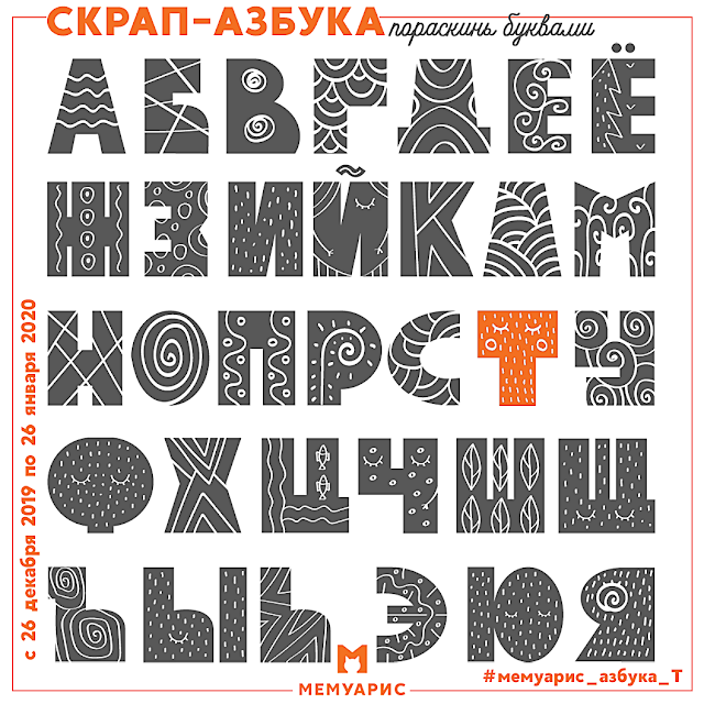 "Скрап-азбука буква Т" -Мемуарис (тег, текстурная паста, топс, трафарет)